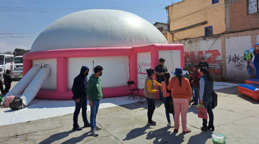 En San Juan Tilapa, Toluca, Estado de México, se dio cita el cine domo de la Fundación Tannos & Chávez para brindar funciones de cine gratuito a todas las familias de esta demarcación.