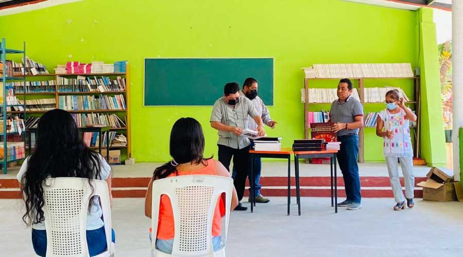 Donación de libros en la Escuela Secundaria General de la agencia La Reforma, en San Pedro Mixtepec