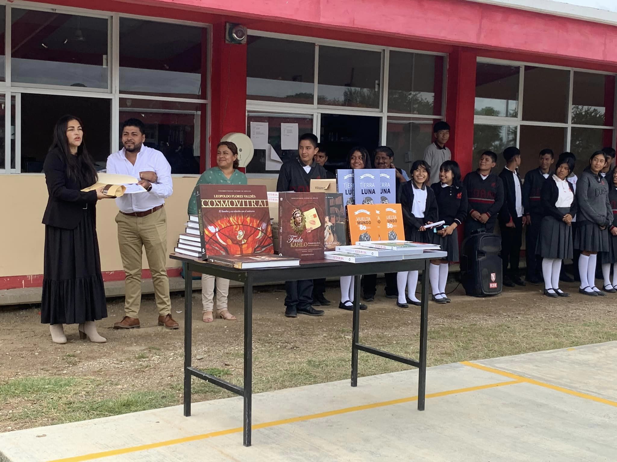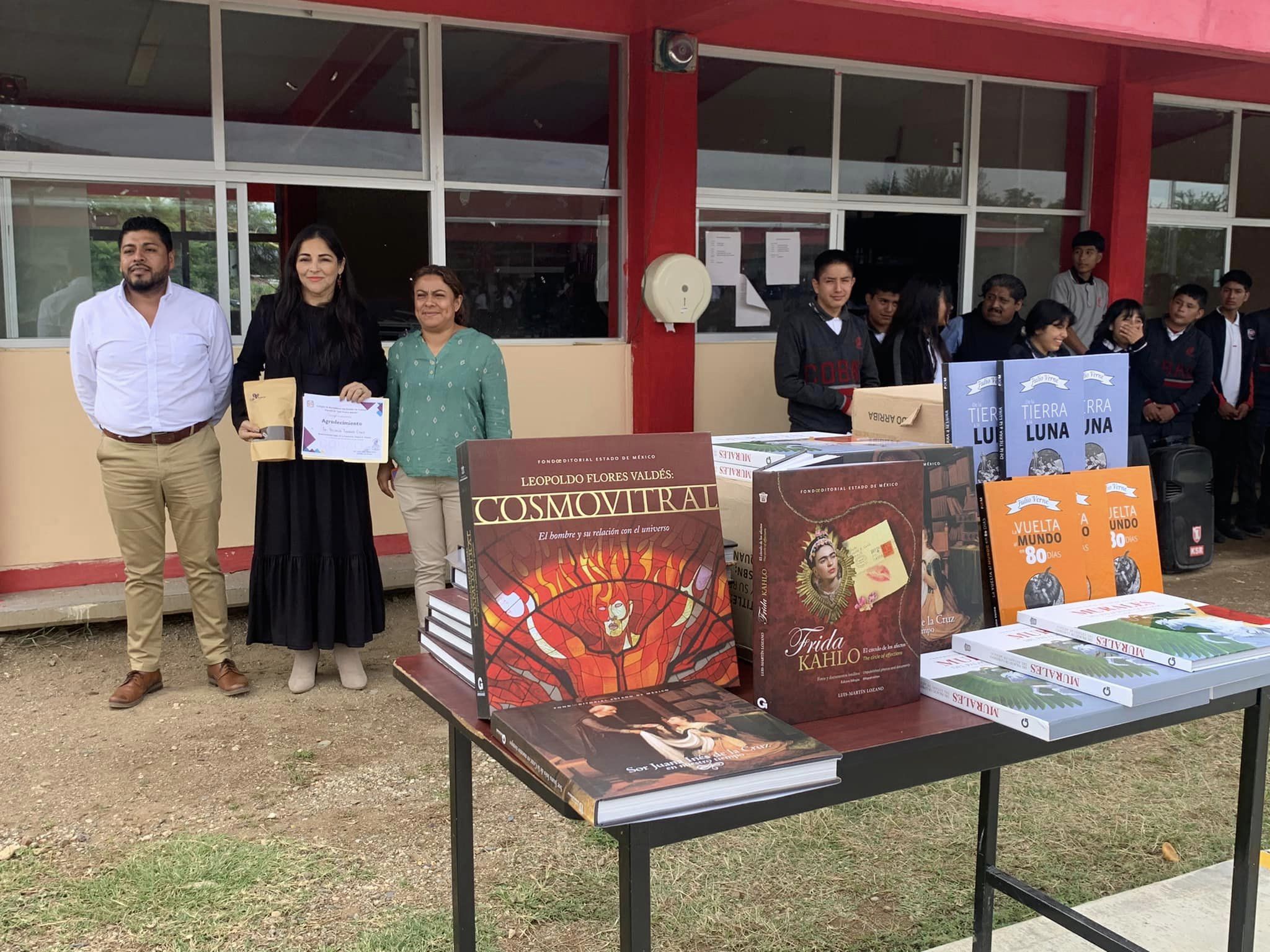 Entrega de libros en el COBAO No. 65 de San Pedro Mártir